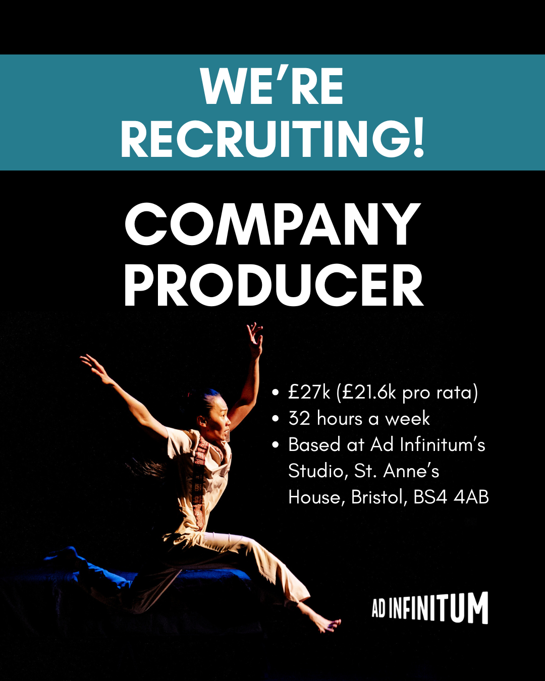 Visit our website to download the recruitment pack including how to apply: ad-infinitum.org/company-producer