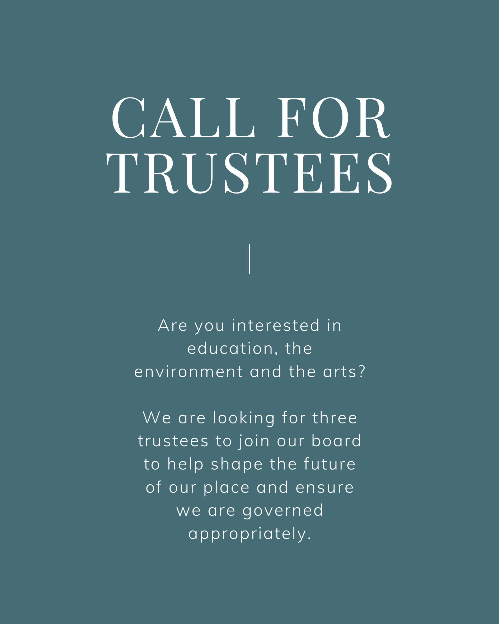 Alt Image Text: A graphic with Call for Trustees on it - white text bluey grey background